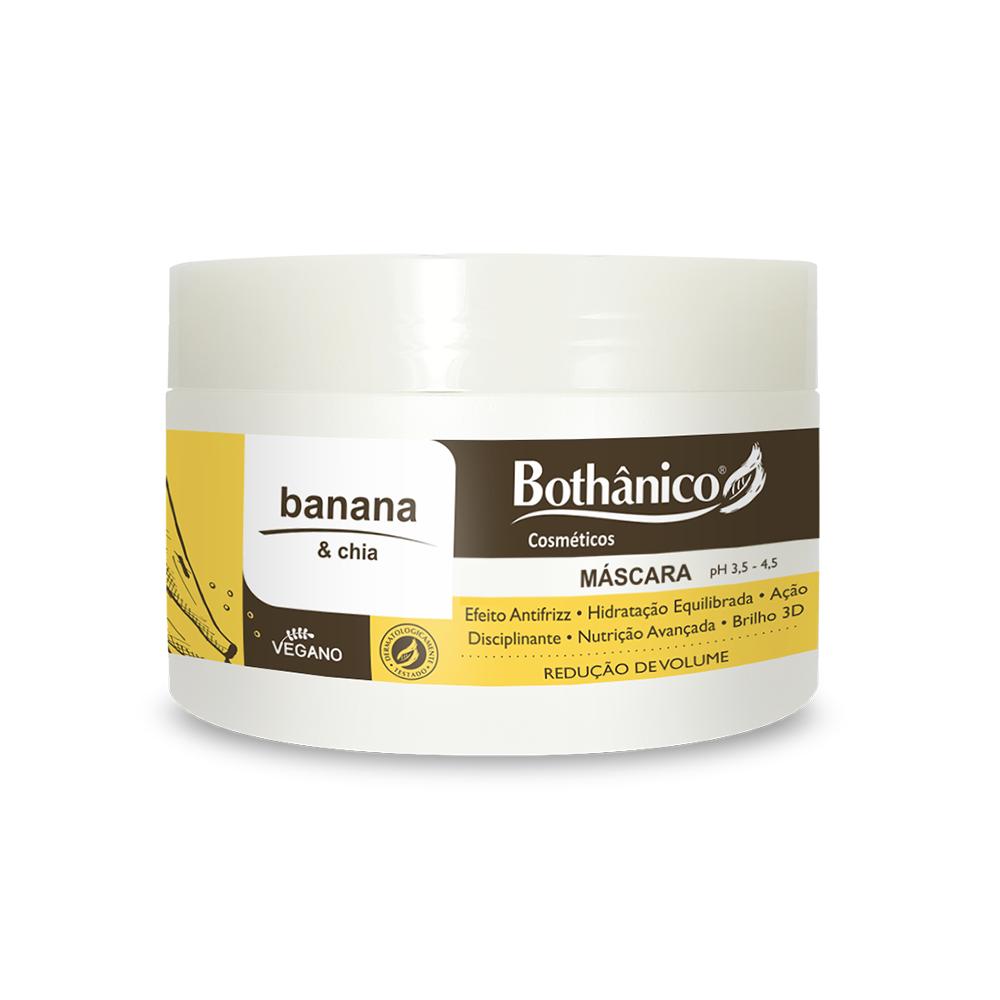 A Bothânico Cosméticos desenvolveu a linha Banana & Chia Vegana, buscando na natureza uma associação imbatível para cuidar dos fios desidratados e indisciplinados. Uma nutritiva combinação entre o extrato obtido da banana, que é riquíssimo em minerais e vitaminas e a fração da semente de Chia, potente em polissacarídeos com alta capacidade de retenção de água e formação de filme, auxiliando na redução do frizz e do volume.