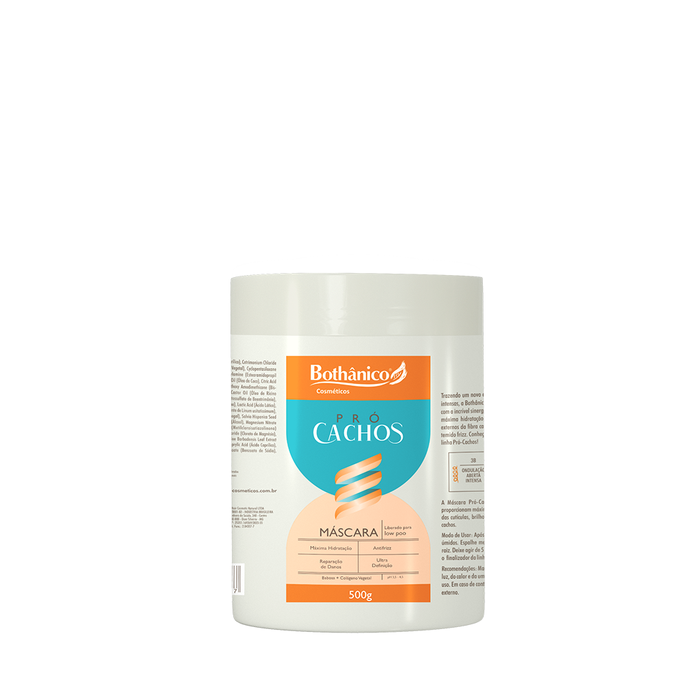 A Máscara Pró-Cachos possui fórmula enriquecida com ativos que proporcionam máxima hidratação, além de conferir ação antifrizz, selagem das cutículas, brilho, maciez, proteção contra danos e ultra definição dos cachos.